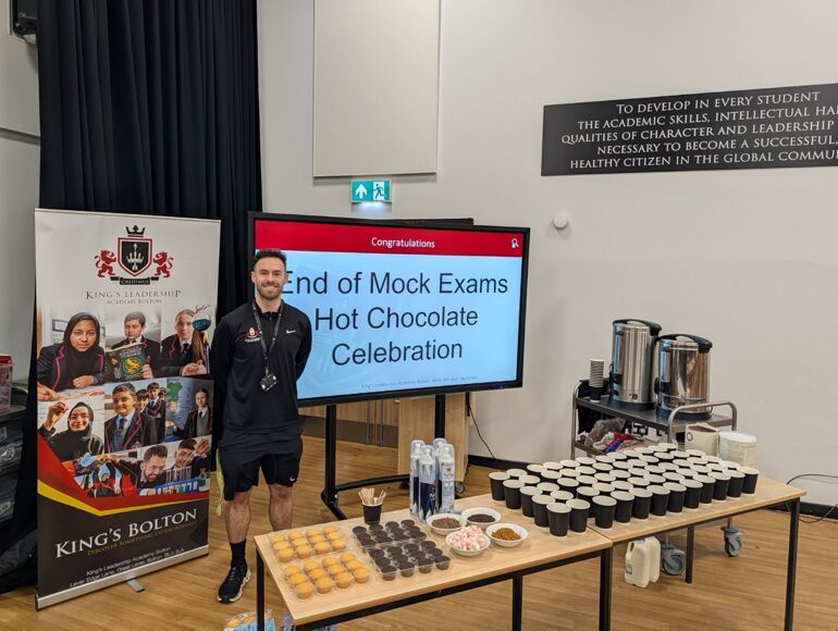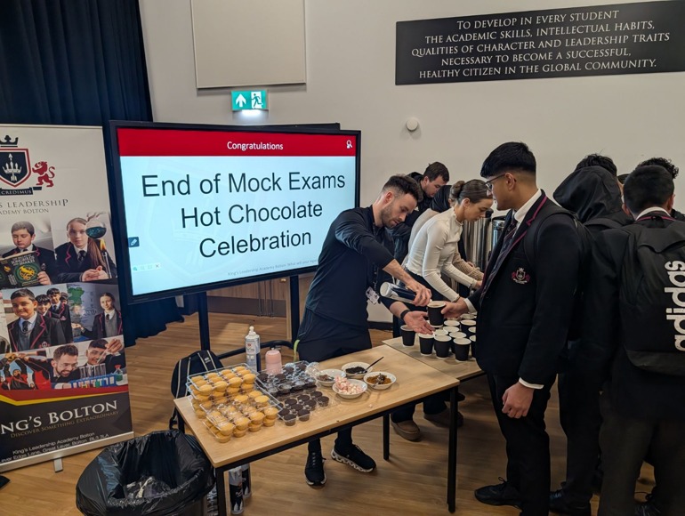 “I’m so proud of our Y11s for all their hard work and endeavour during the mock exams. On a cold, wet morning in Bolton, it was wonderful to see them enjoying a well-deserved hot chocolate during Mill time to lift their spirits!”